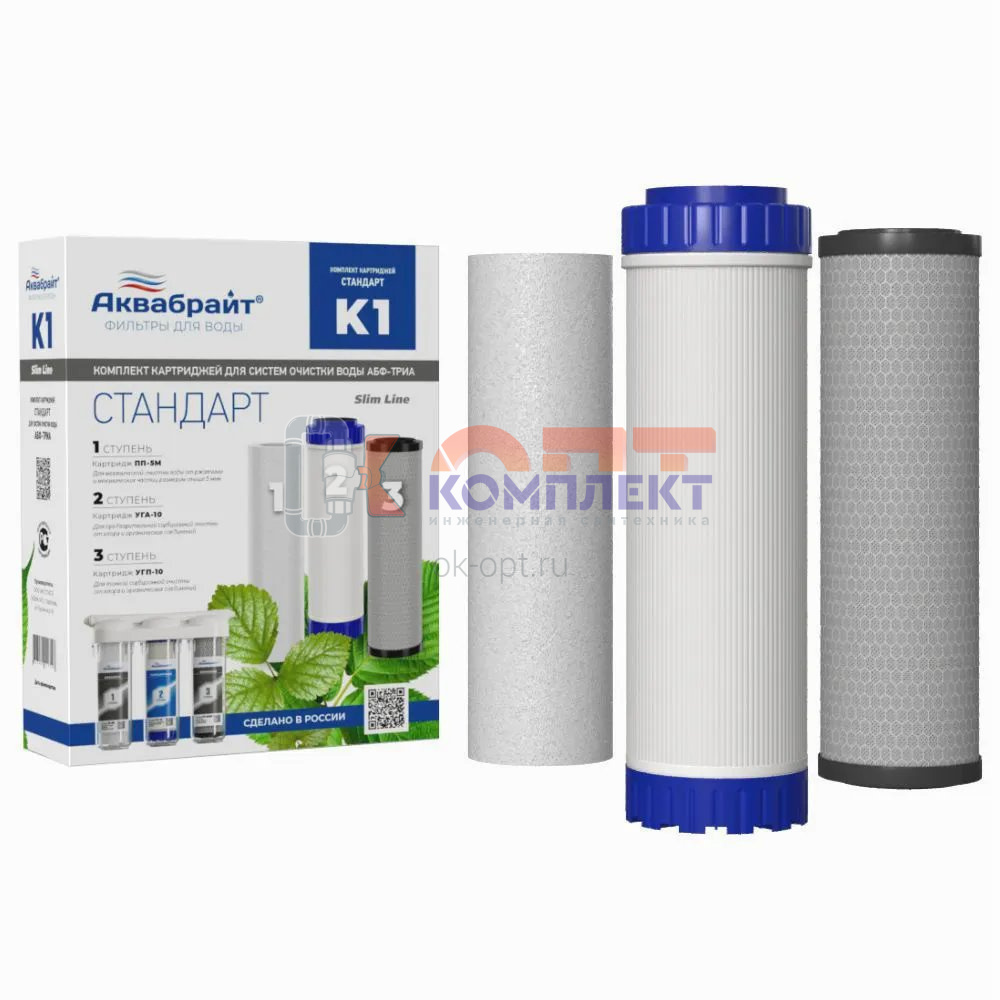 комплект картриджей 3 ступени АКВАБРАЙТ Стандарт (ПП-5М, УГА-10, УГП-10) (5шт)