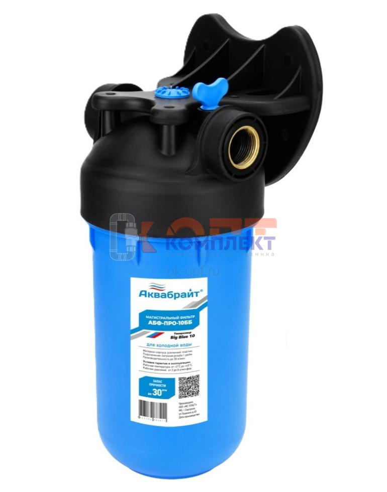 АБФ-ПРО-10ББ Магистральный фильтр для воды. Комплектация: Корпус фильтра, ПЛАСТИКОВЫЙ КРОНШТЕЙН с