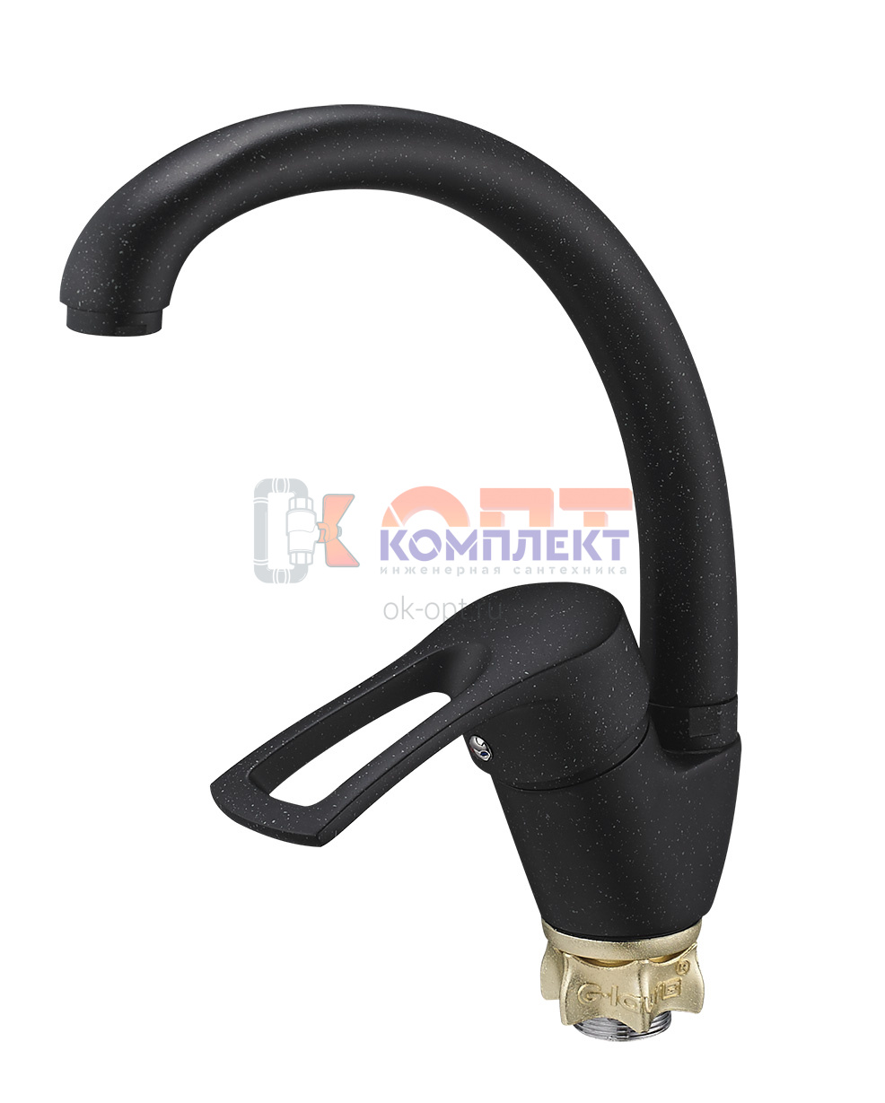 смеситель G.Lauf для кух. мойки (Lt) с пов. изливом, ø40, гайка (корона), черный 9G4-A181KB