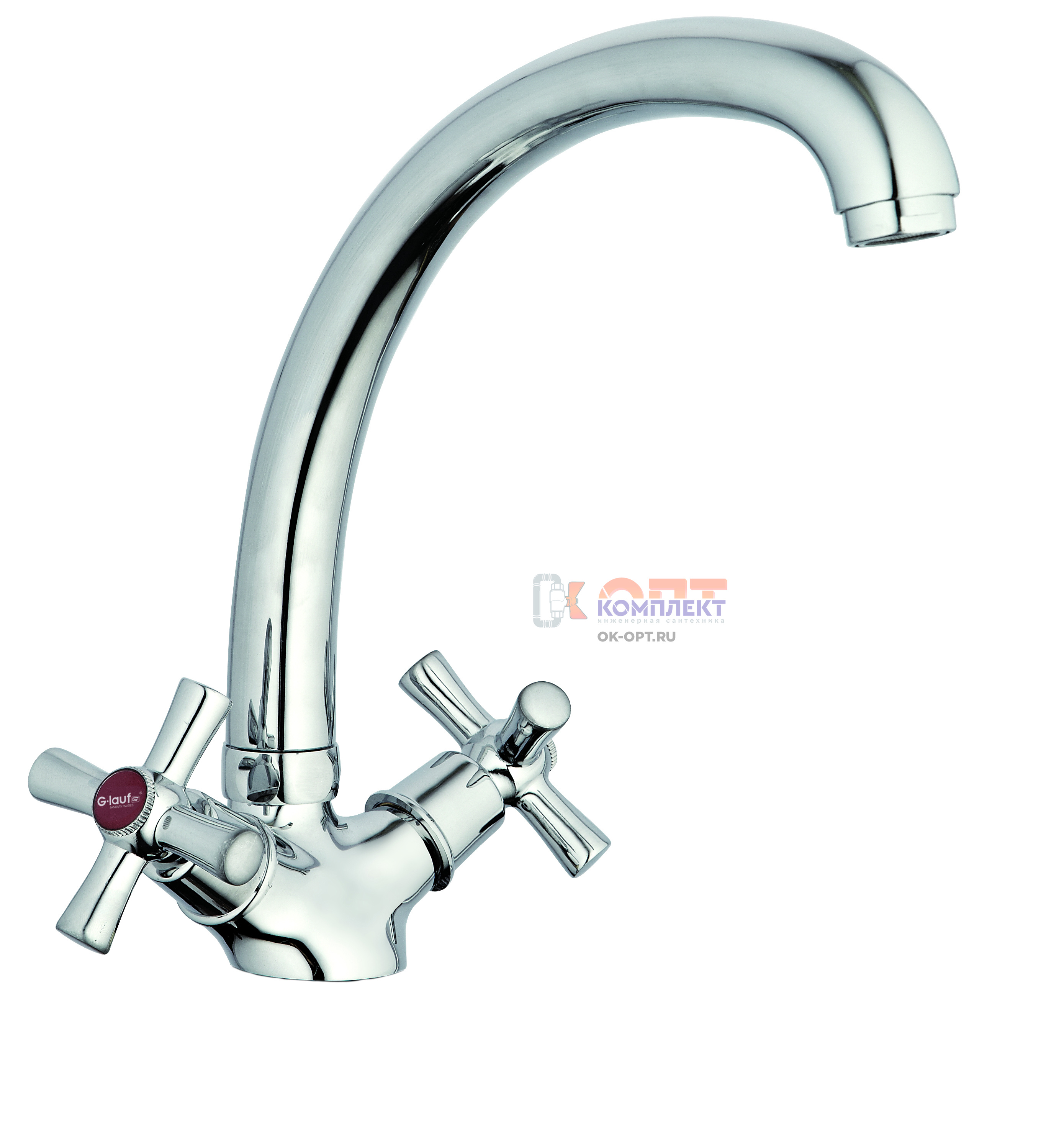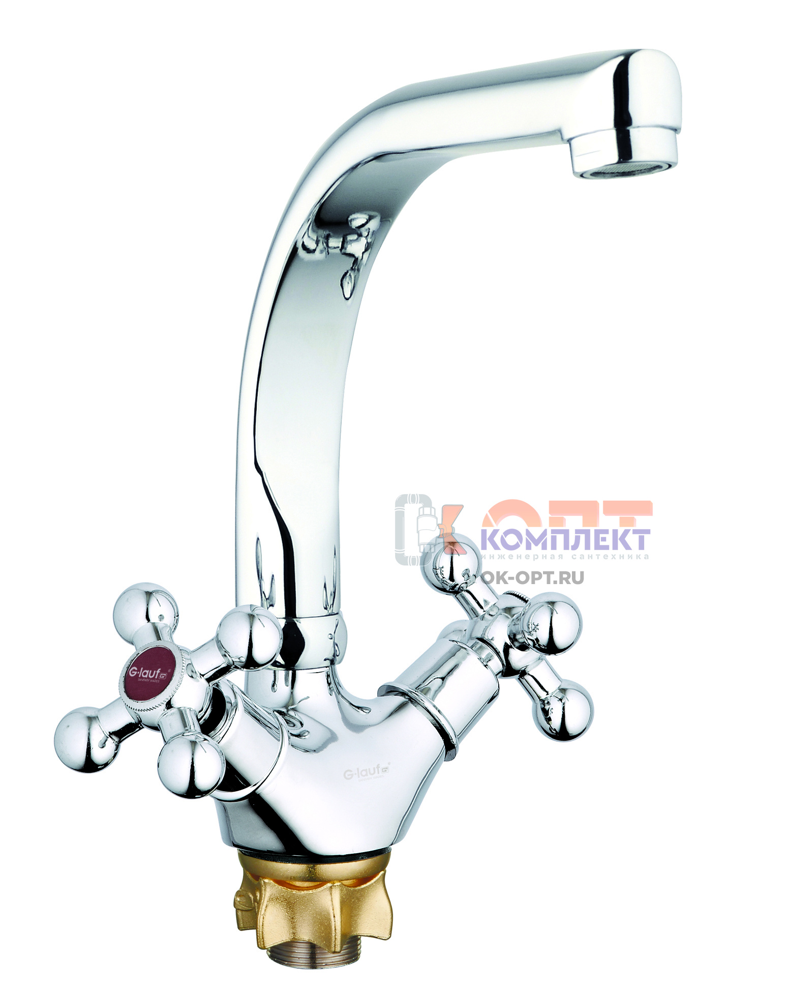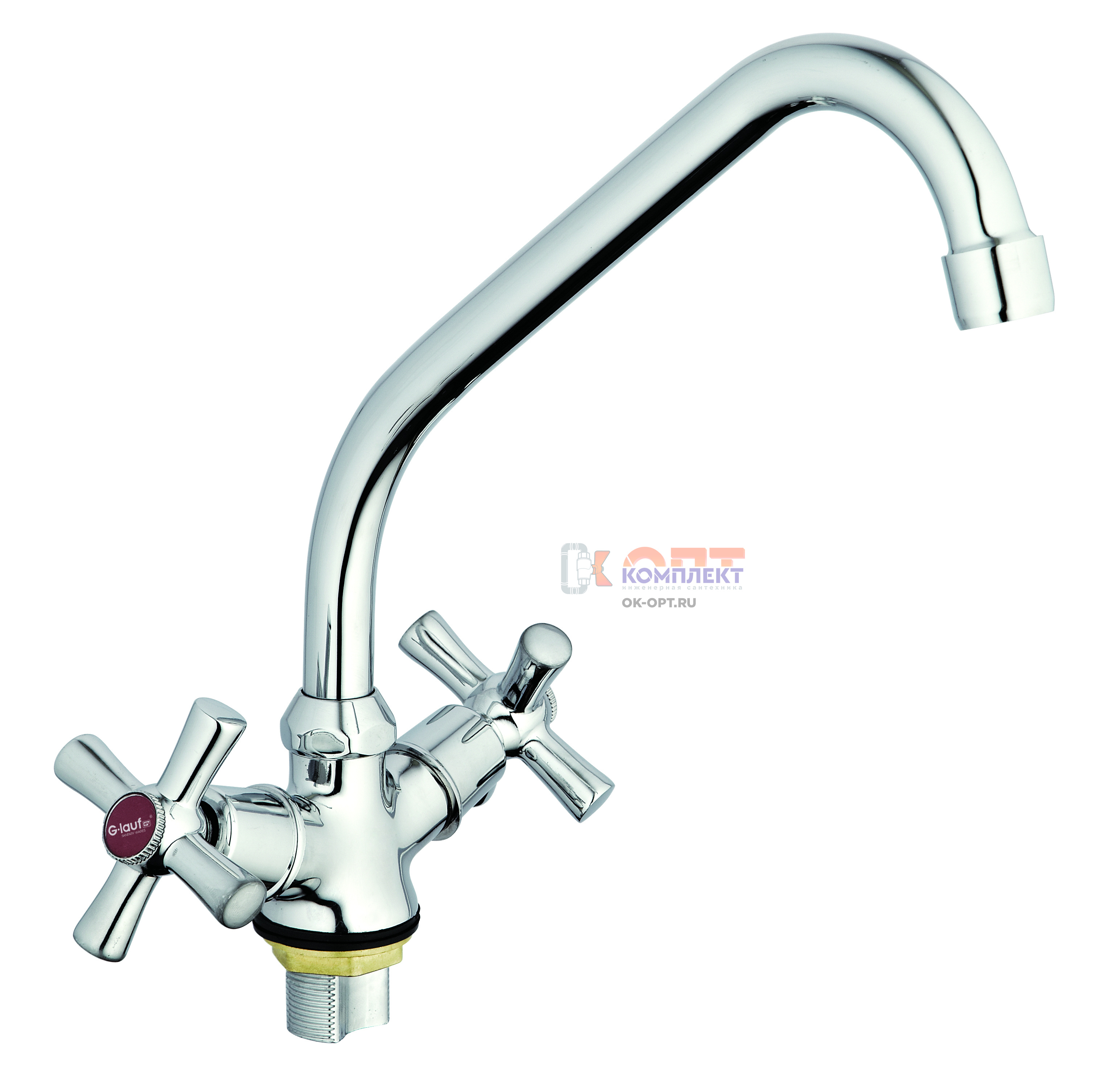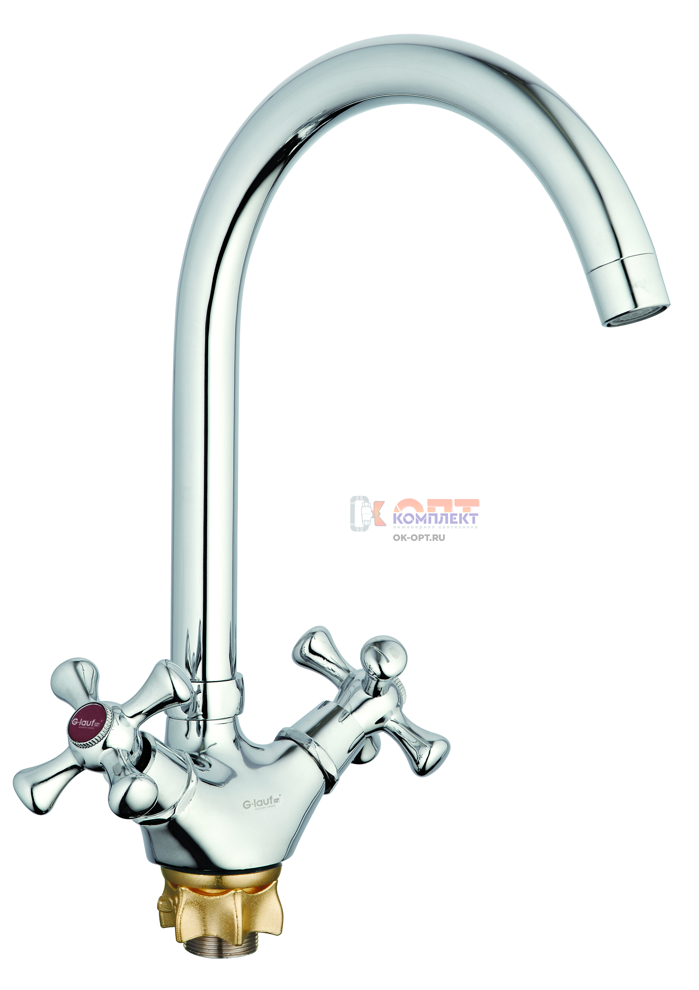 смеситель G.Lauf для умывальника или кух. мойки с пов. изливом, кер. (1/2) 180°, гайка (корона)