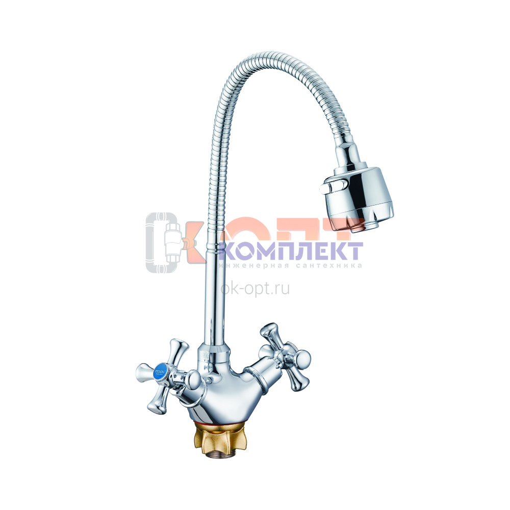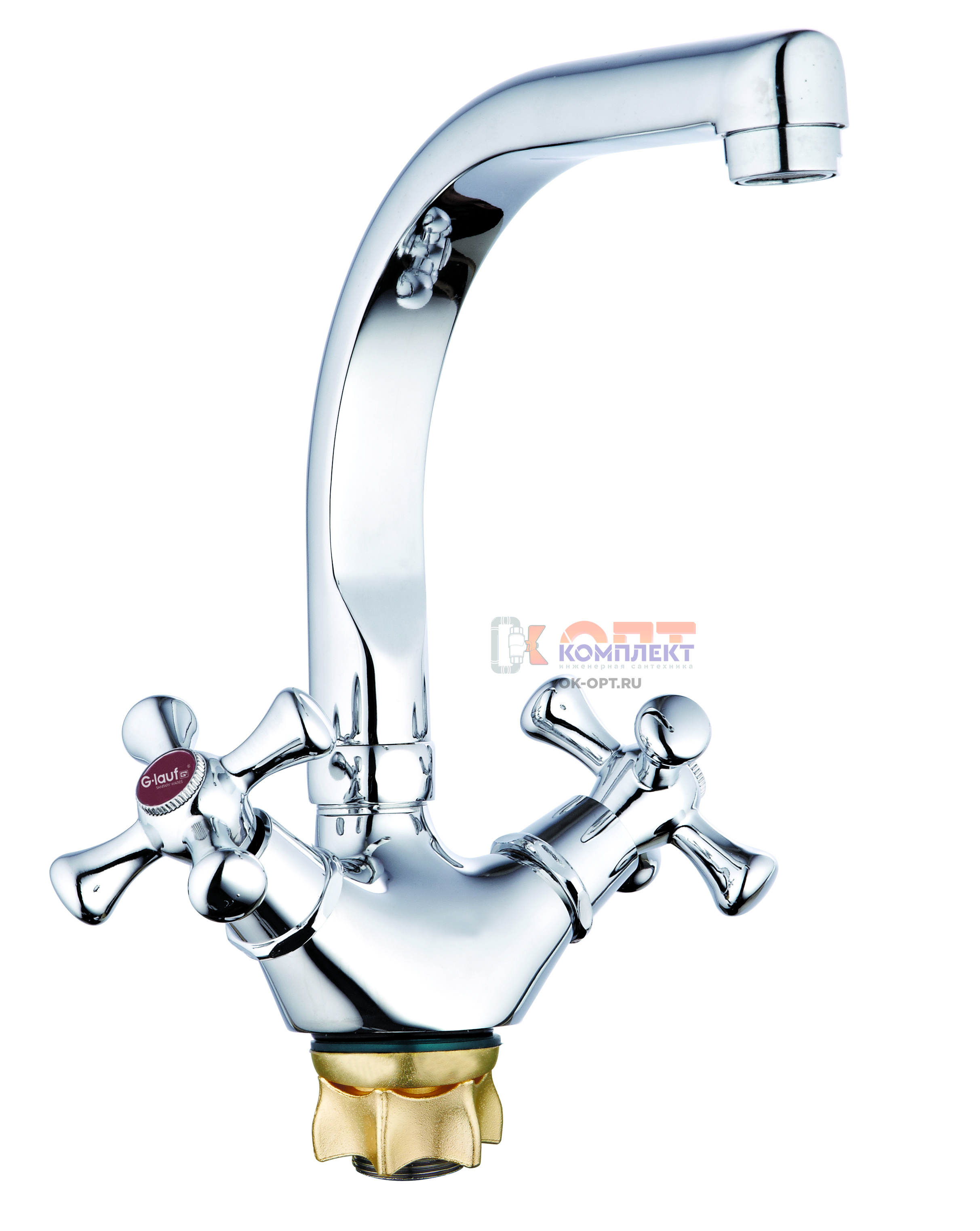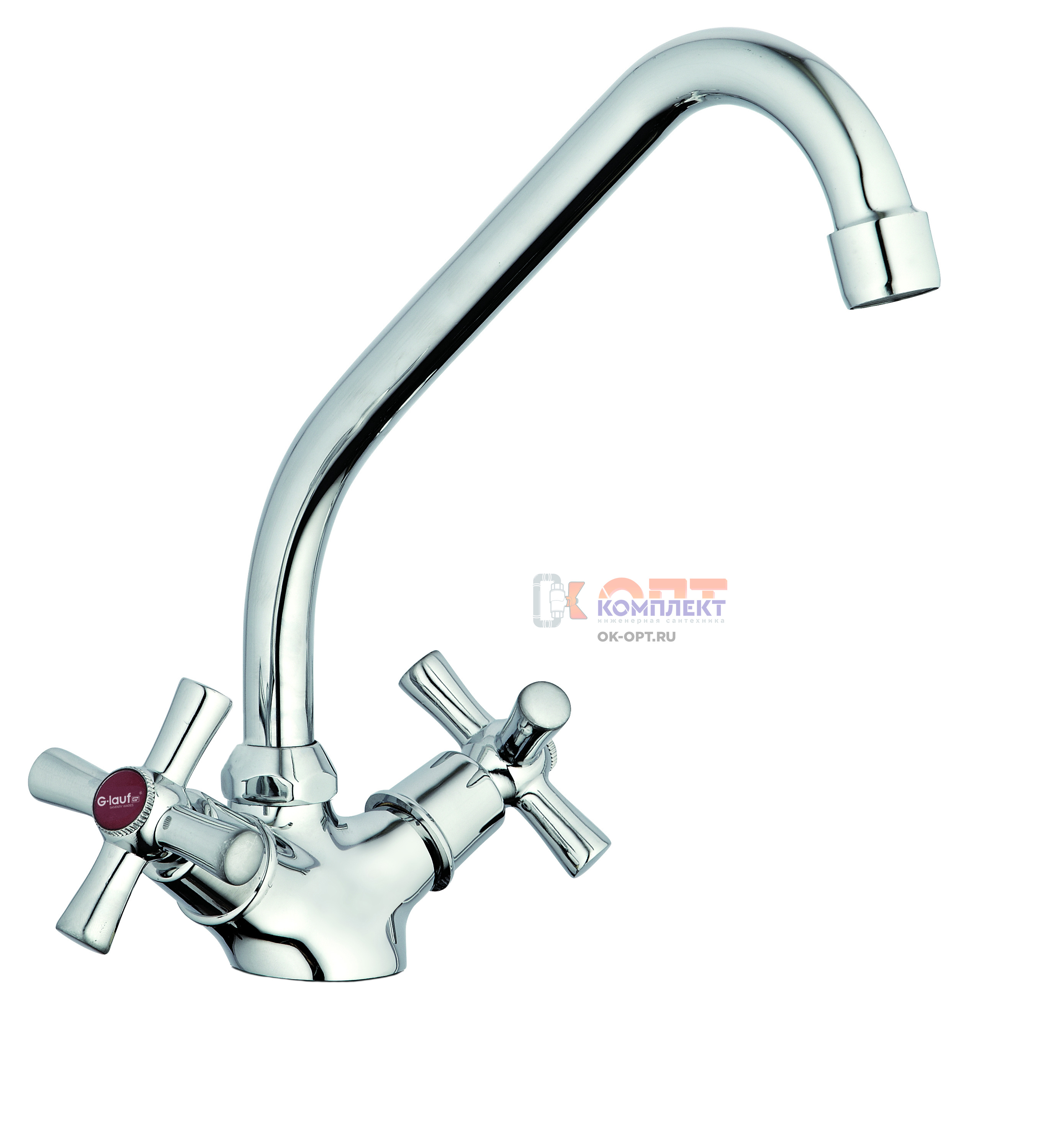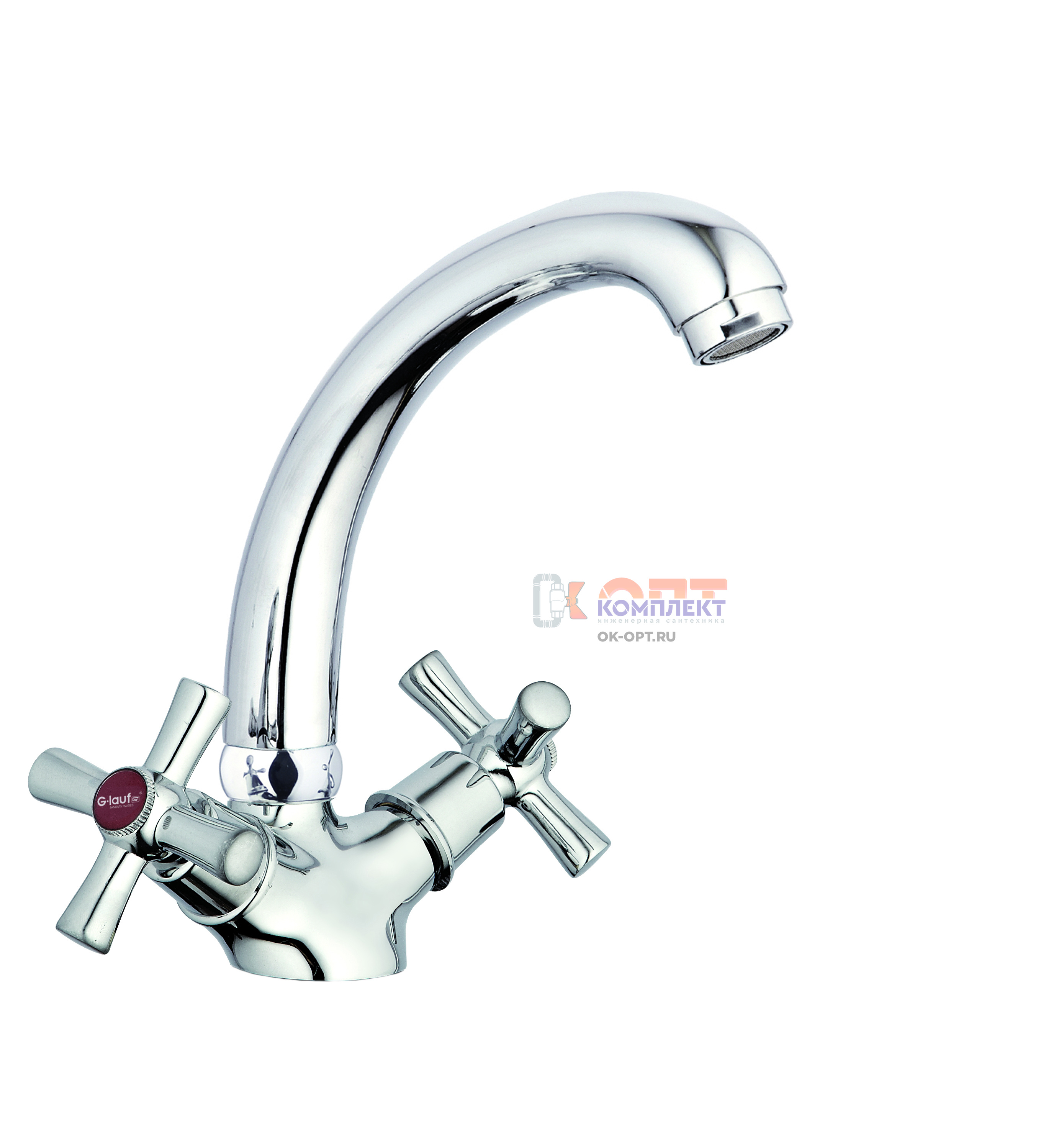 смеситель G.Lauf для умывальника или кух. мойки с пов. изливом, кер. (1/2) 180°, гайка (корона)