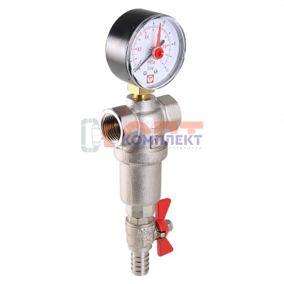 Фильтр промывной (самоочищающийся) 1/2" с манометром (сетка 1000/250мкм) (1 /36шт)