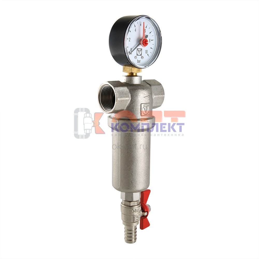 Фильтр промывной (самоочищающийся) 1" с манометром (сетка 1000/250мкм) (1 /12шт)