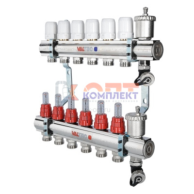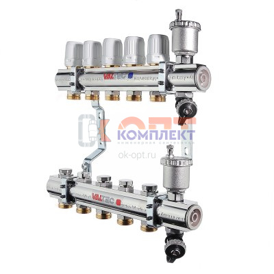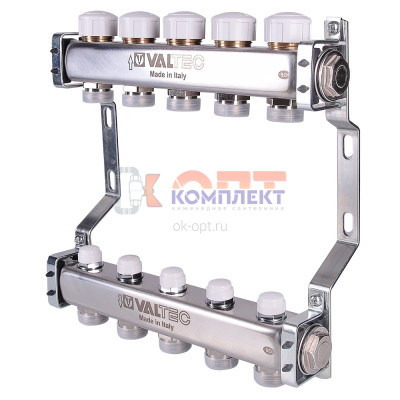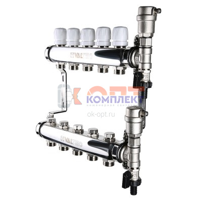 Коллек группа НЕРЖ со встр. расх. в сборе, с воздух и слив клапан 1"х6 вых. Евроконус 3/4" (Италия)