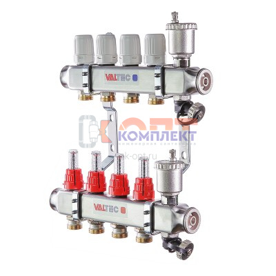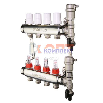 - Коллекторная группа НЕРЖ со встр. расх. в сборе, с воздух и слив клапан 1"х10 вых. Евроконус 3/4"