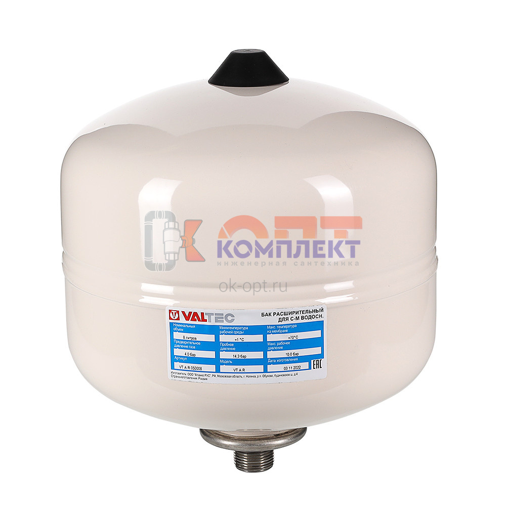 Бак расш. Белый для с-м водосн. 8л./4,0 - 10bar (3/4"), нерж фланец, заполнен азотом, (Flamco)