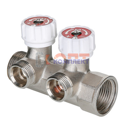 Коллектор с регул. вентилями, 1"х2 вых. Евроконус 3/4" (на подающий трубопровод)