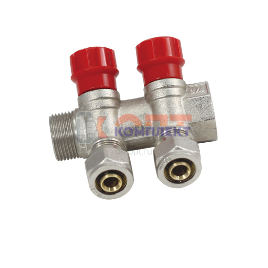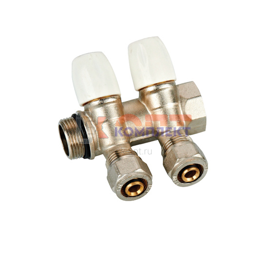 коллектор 2 выхода с отсеч кранами 3/4х1/2 нар.латунь (1/50шт)