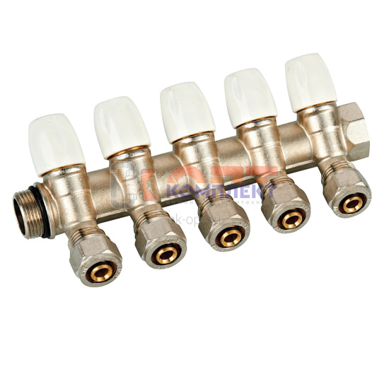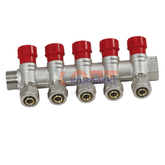 коллектор с отсеч. кранами 3/4"х16 - 5 вых. красн.+син. латунь VR (40/1шт)