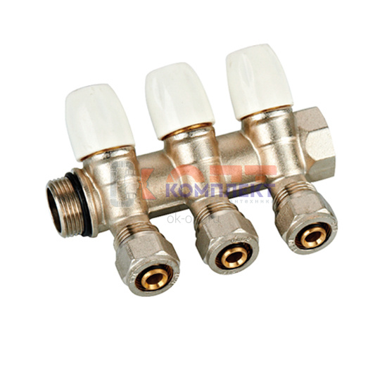 коллектор 3 выхода с отсеч кранами 3/4х1/2 нар.латунь (1/30шт)