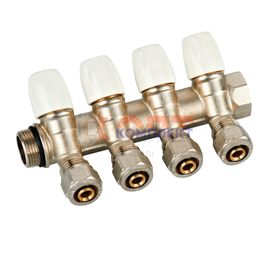 коллектор 4 выхода с отсеч кранами 3/4х1/2 нар.латунь (1/30шт)