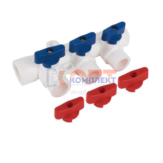 Коллектор PPR с отсечными кранами 32 вн. х 3 вых. 20 вн. (кр+син) (1/60шт)