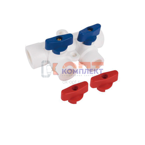 Коллектор PPR с отсечными кранами 40 вн. х 2 вых. 20 вн. (кр+син) (1/70шт)