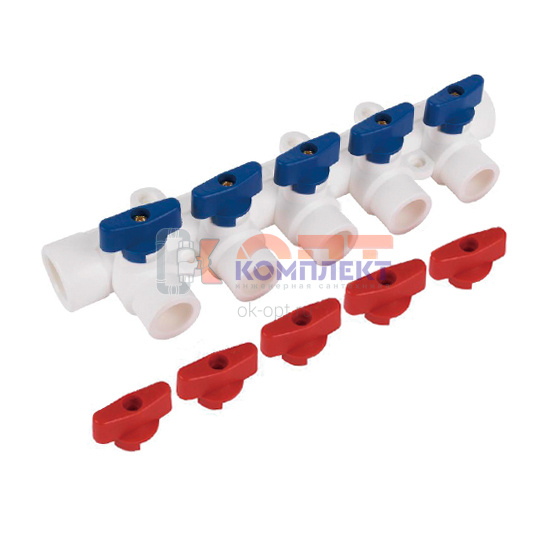 Коллектор PPR с отсечными кранами 32 вн. х 5 вых. 20 вн. (кр+син) (1/40шт)