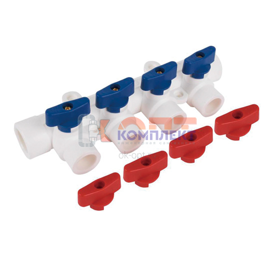 Коллектор PPR с отсечными кранами 32 вн. х 4 вых. 20 вн. (кр+син) (1/50шт)