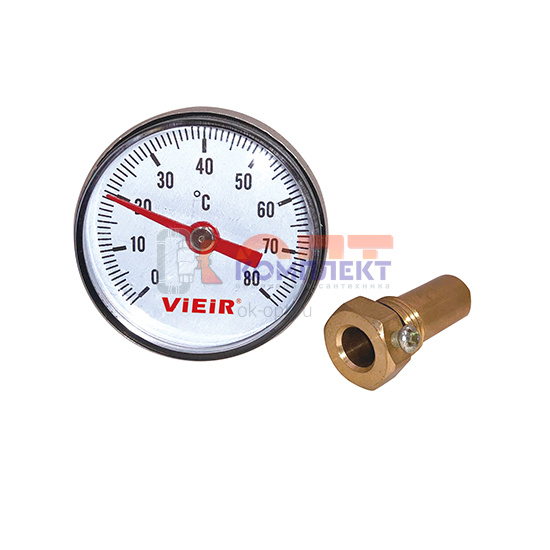 Термометр 0-120 биметаллический d 40мм, зад подключение 1/4, с погружной гильзой ViEiR (1/100шт)