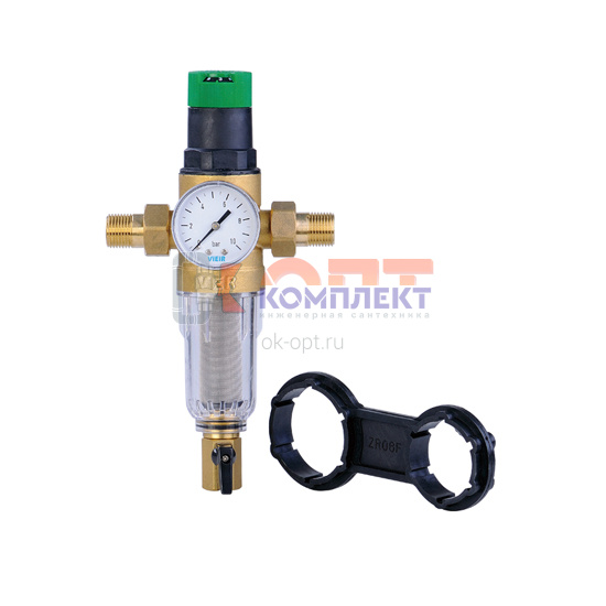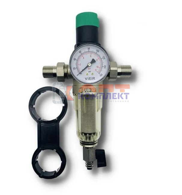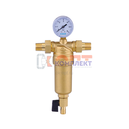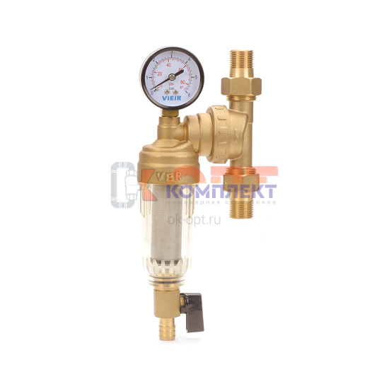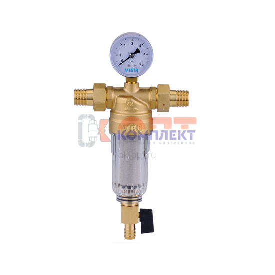 фильтр самоочищ. с рег. давления и манометром 1/2" для хол. воды прозрач.корпус VR (1/10шт)