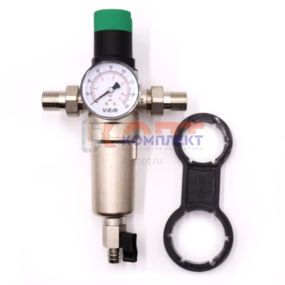 Фильтр с регулятором давления и манометром 1/2" для холод. воды НИКЕЛЬ "ViEiR" (10/1шт)