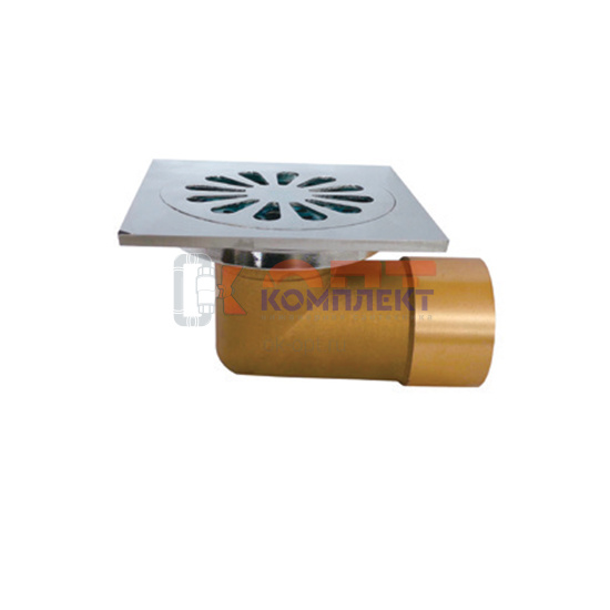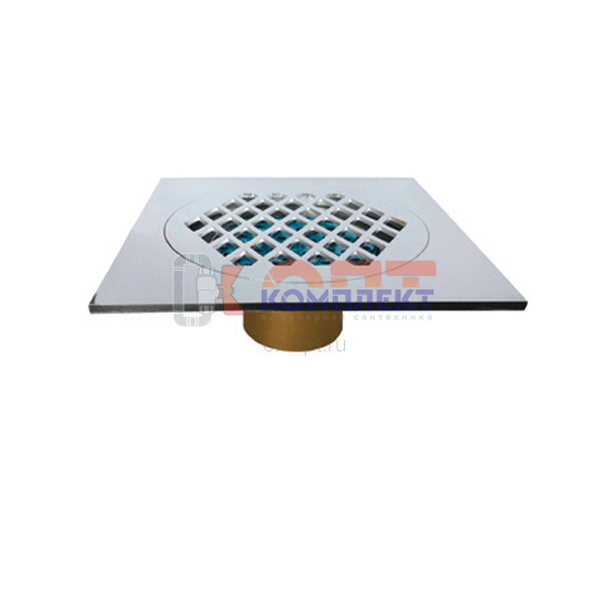 Трап прямой с сухим затвором вып 50мм 150*150 мм корпус ЛАТУНЬ решетка НЕРЖАВЕЙКА VR (1/60шт)