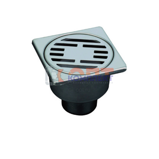 Трап прямой с сухим затвором вып 50мм 100*100 мм корпус ЛАТУНЬ решетка НЕРЖАВЕЙКА VR (1/60шт)