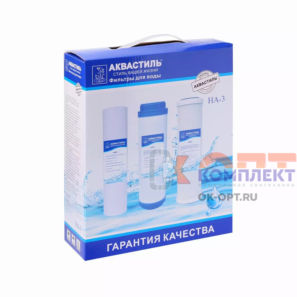 комплект картриджей 3 ступени АКВАСТИЛЬ для водопроводной воды (Стандарт) в картон коробке