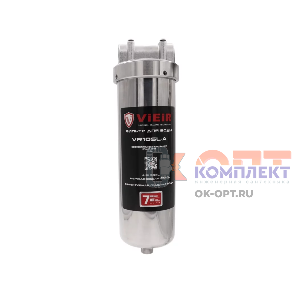 Магистральный НЕРЖ фильтр (ХВС/ГВС) с многораз фильтром 100мкм и дренаж краном (хомут соед) (10/1шт