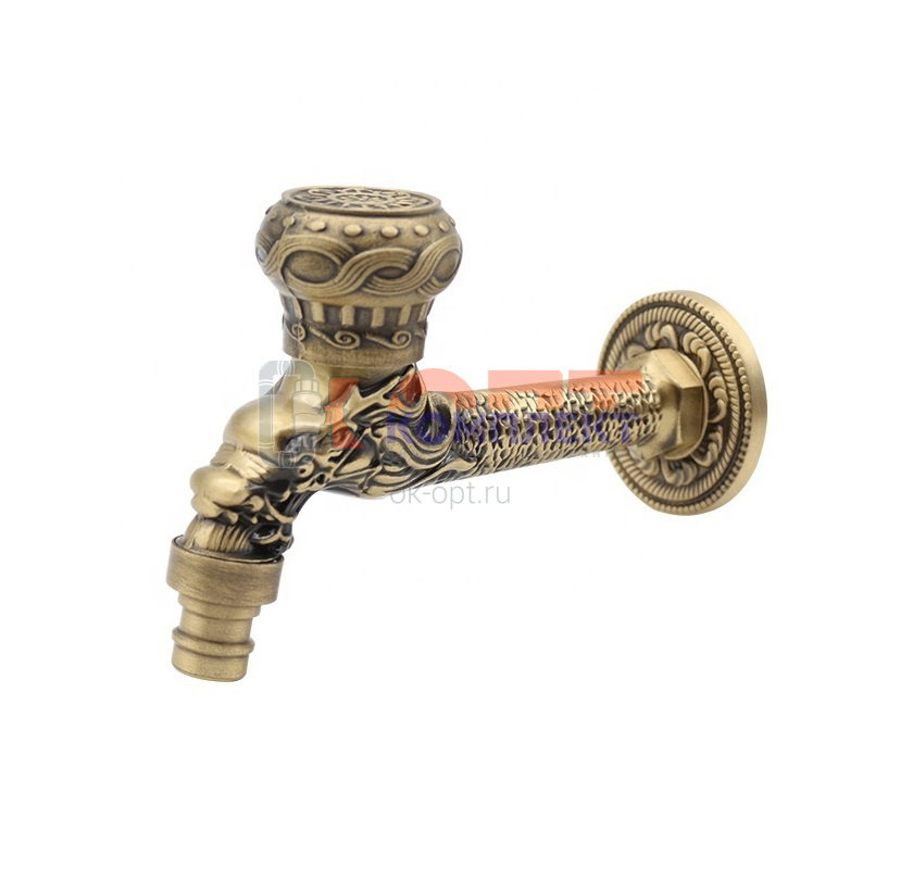 кран ДЛЯ БАНИ водоразборный с носиком 1/2' длинный латунь декор бронза (1/50шт)