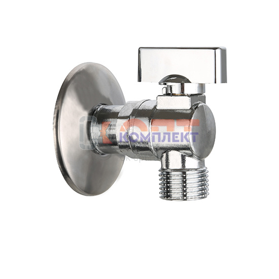 кран шар. угловой хром для подкл. с/т приборов с отраж. 1/2"х3/4" (1/100шт) декор. ручка квадрат