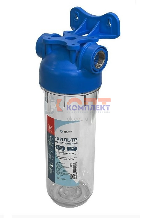 Магистральный фильтр SL10 3/4" для ХВС прозрач корпус ПЭТ с резьбой АКВАТЭК (12шт)