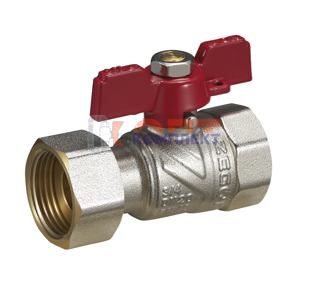 Кран шаровый Zegor прямой с накидной гайкой Pn40 латунь никель 1/2" вн-вн бабочка (25/1