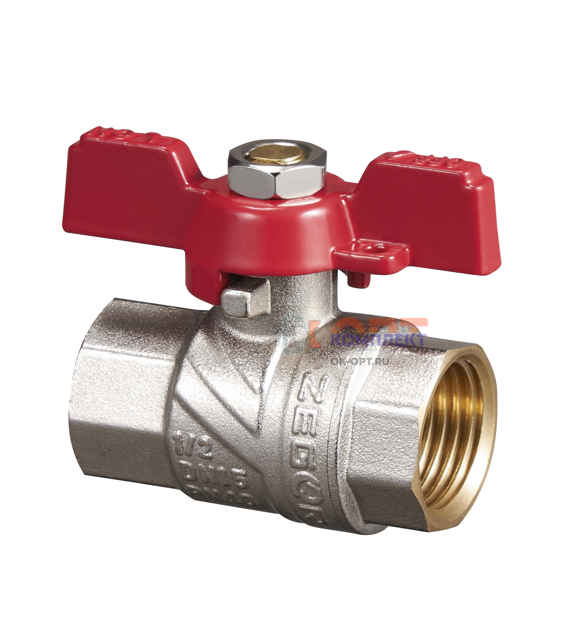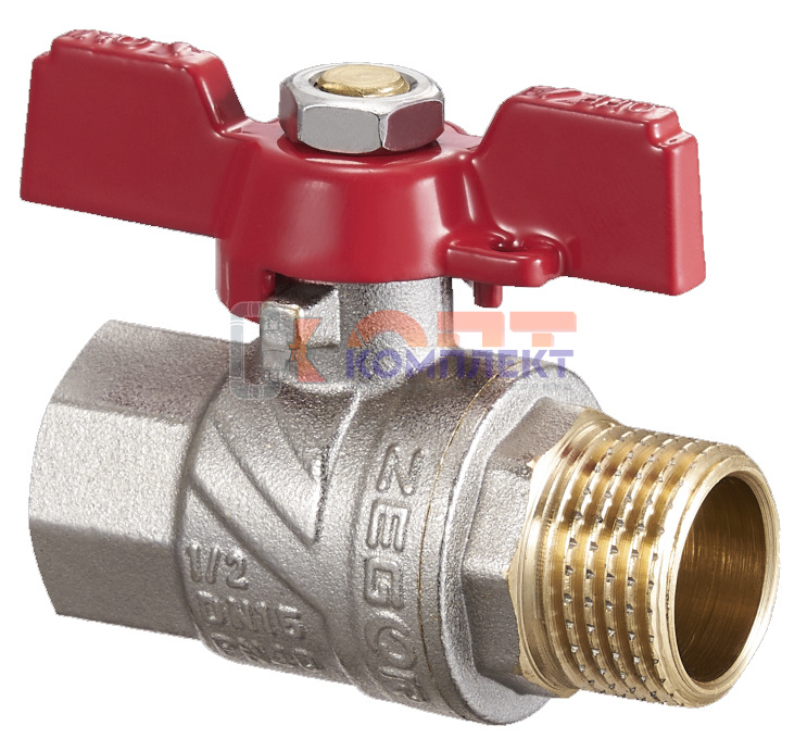 Кран шаровый Zegor прямой с накидной гайкой Pn40 латунь никель 1/2" вн-вн бабочка (25/1
