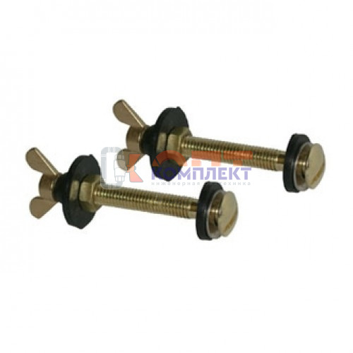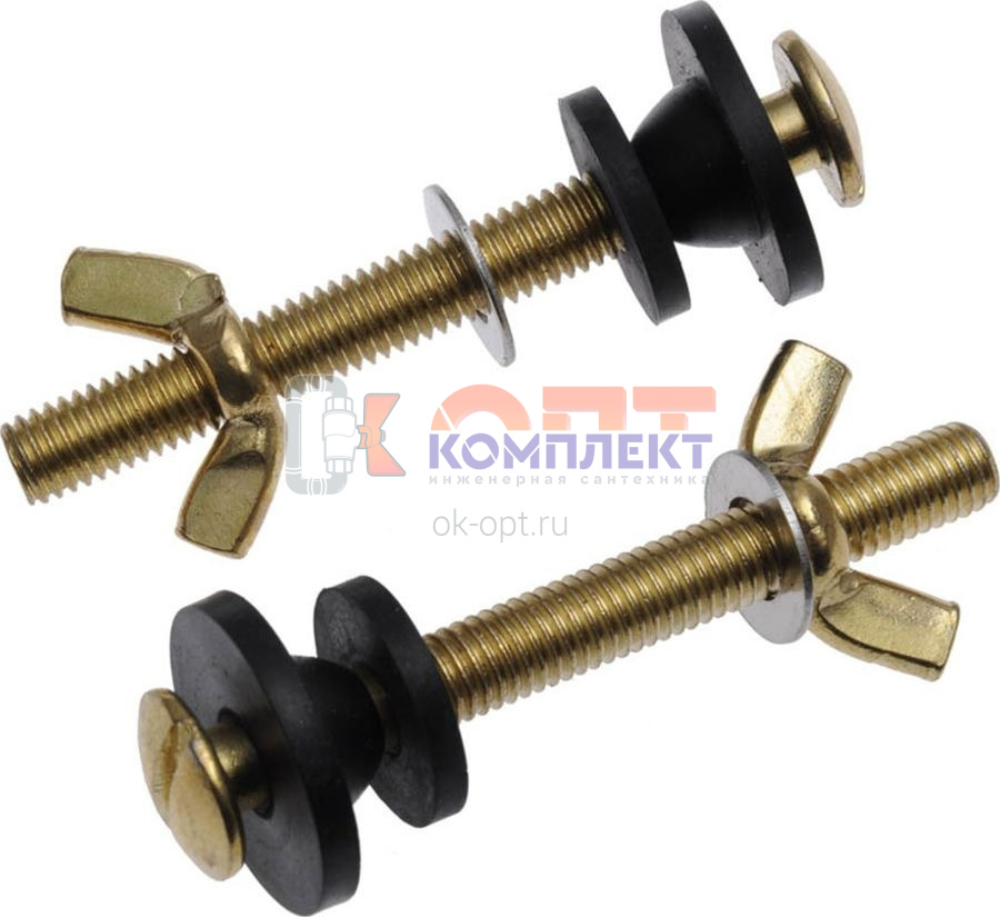 Комплект 2шт крепления бачка к унитазу с гайкой барашек, желтый цинк (250шт)
