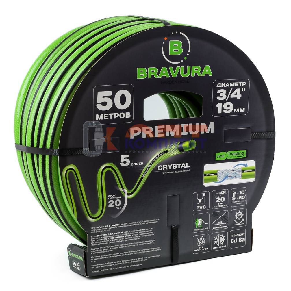 Шланг ПВХ для полива 3/4" (19мм) 5 слоев Bravura 5 Crystal (-10*+60*, 10бар) UV защита (бухта 50м)