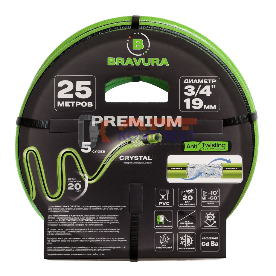Шланг ПВХ для полива 3/4" (19мм) 5 слоев Bravura 5 Crystal (-10*+60*, 10бар) UV защита (бухта 25м)