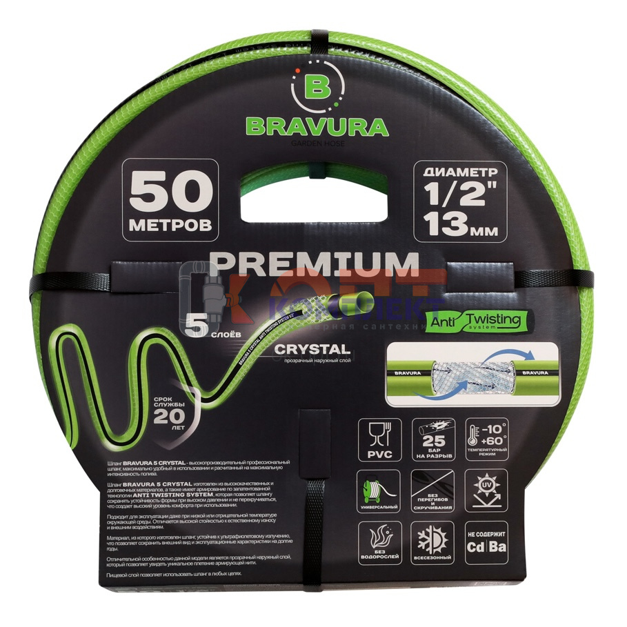 Шланг ПВХ для полива 1/2" (12,5мм) 5 слоев Bravura 5 Crystal (-10*+60*, 10бар) UV защита (бухта 50м)