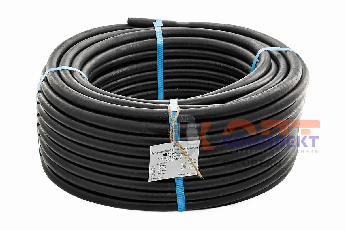 Шланг полив резиновый 18мм армированный напорный КОРДОВЫЙ (бухта 25м)
