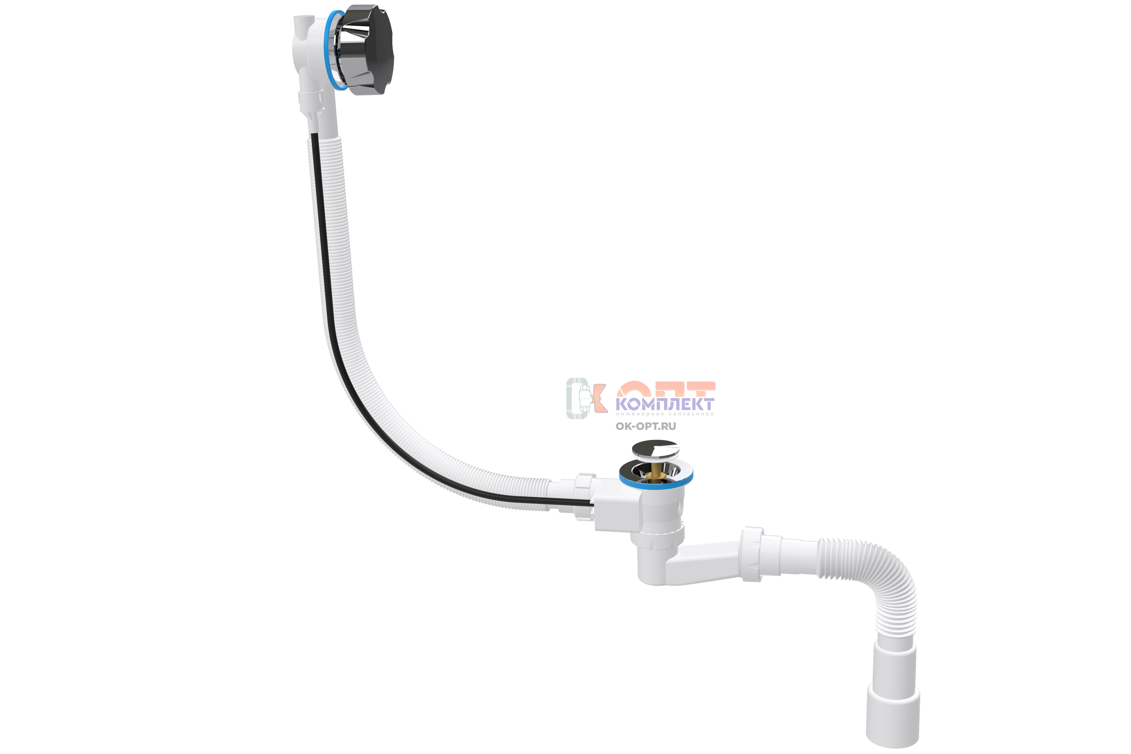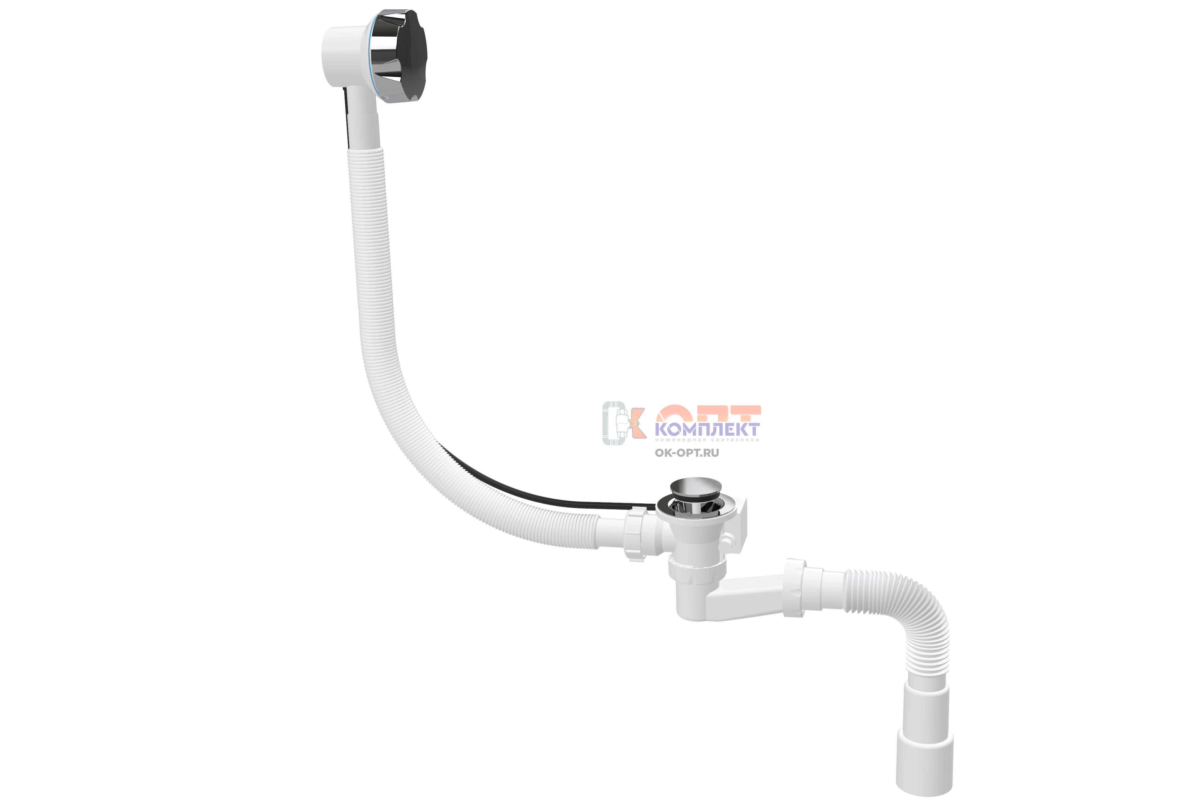 Сифон-автомат для ванны CLICK-CLUCK c ПЛАСТ хром рукояткой,высота(h)-110мм, с гт 40х40/50 (20шт)
