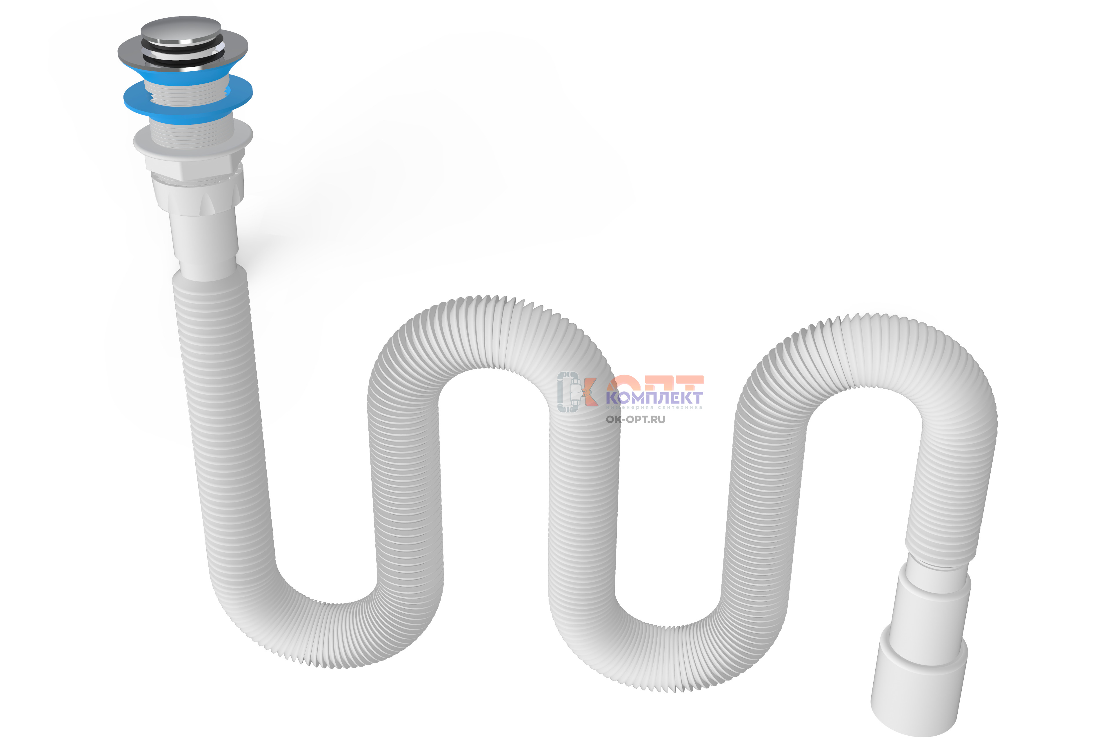 Сифон гофрированный (удлиненный) 1 1/2"х40/50, с механизмом click-cluck, длинна max 1500 мм (50шт)