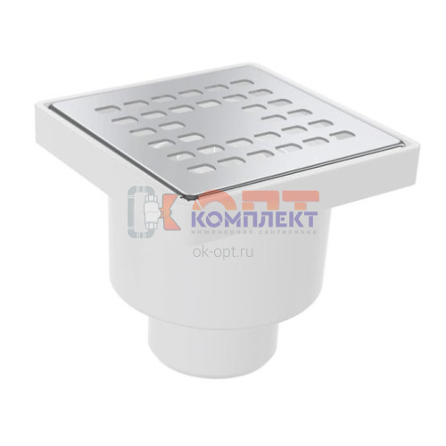Трап сантехнический ПРЯМОЙ D 50, решетка нержавеющая сталь. 100х100 мм,сухой затвор (75шт)