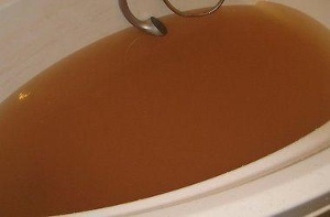 Всем знакома ситуация, когда после проведения ремонтных работ или кратковременного отключения трубопровода из смесителя льется мутная жидкость коричневого цвета (рис. 9). Если налить эту жидкость в бутылку, через небольшой промежуток времени можно заметить, что верхняя часть жидкости в бутылке станет прозрачной, а в нижней скопится темный осадок. Реакция осадка на поднесенный магнит доказывает, что он представляет собой гидроокислы железа, в быту называемые «ржавчиной». Частицы ржавчины столь малы, что способны беспрепятственно пройти даже через фильтры с размером ячеи 100 и 50 мкм.