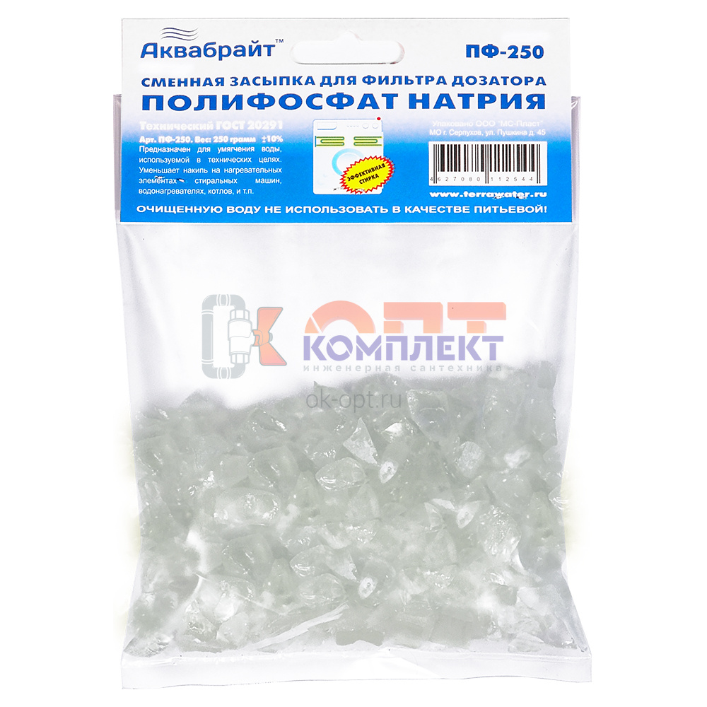Полифосфат натрия АКВАБРАЙТ. Для ТЕХ. УМЯГЧЕНИЯ воды пакет 250гр (20шт)
