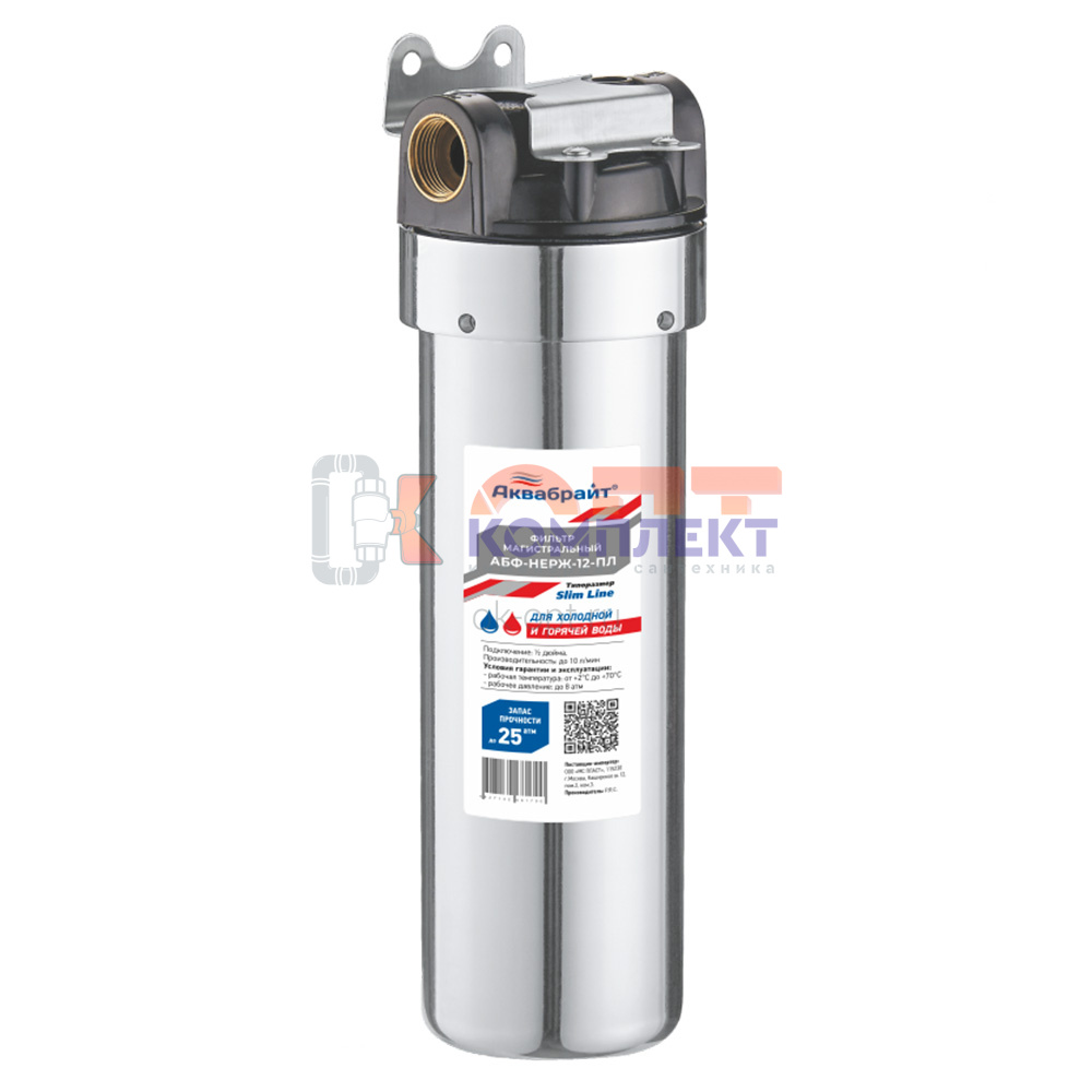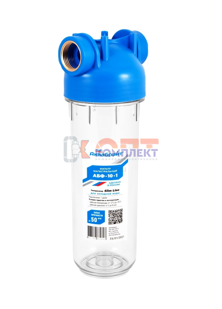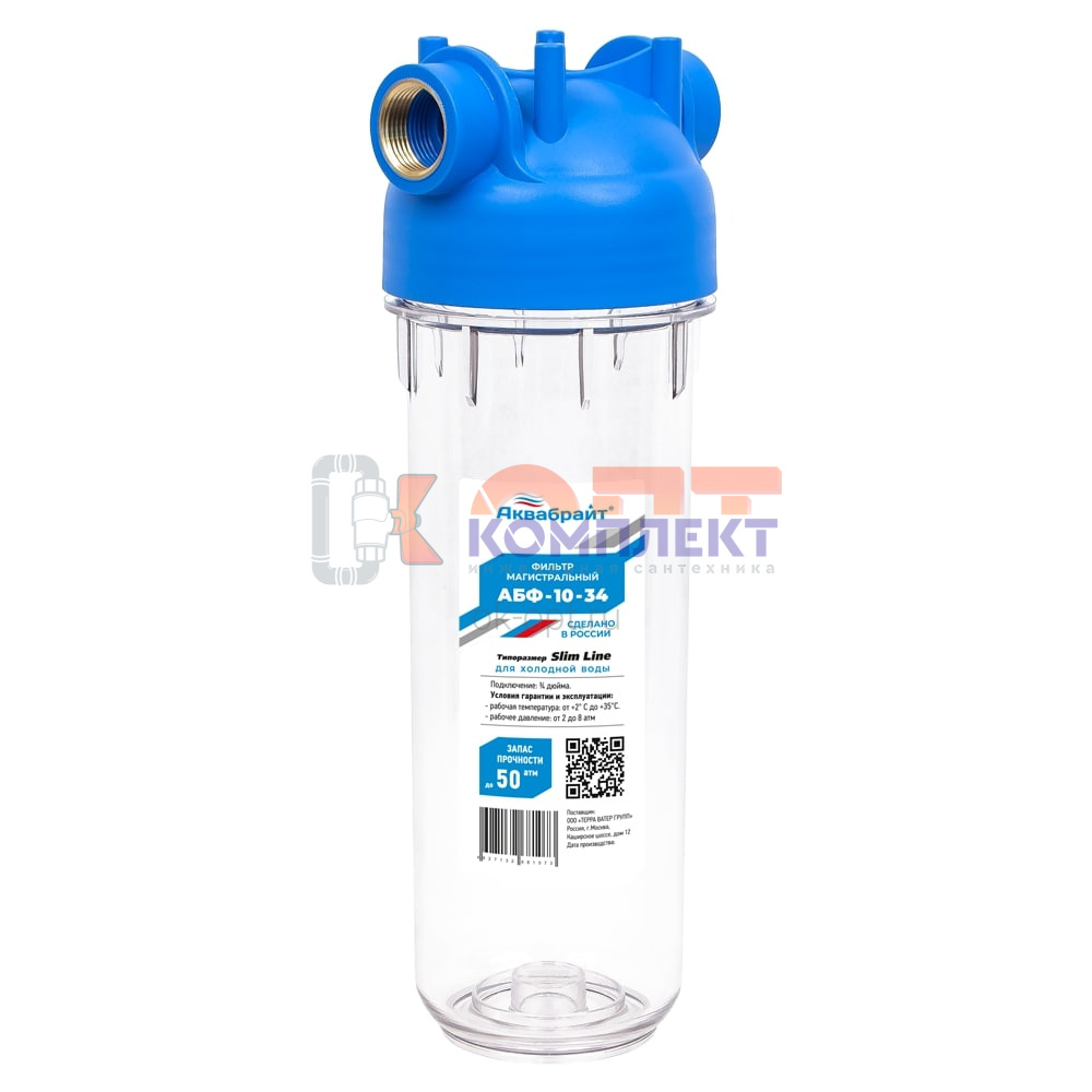 Магистральный фильтр для ХВС SL10 дюймов 1" прозрач корпус с резьбой АКВАБРАЙТ (12шт)