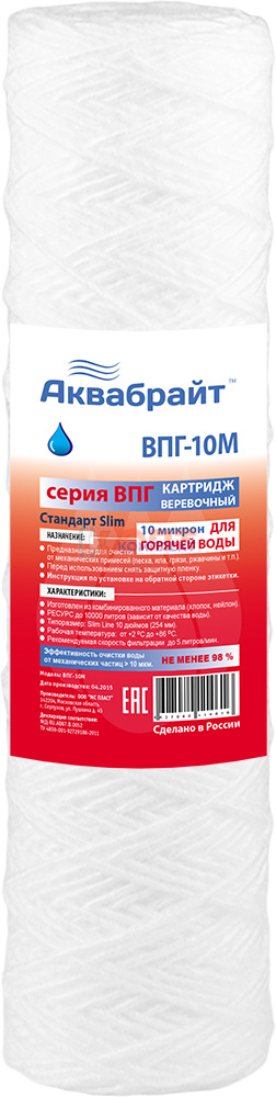 Картридж SL10 ПОЛИПРОПИЛЕН 1 мкм АКВАБРАЙТ серия ЛАЙТ (50шт)