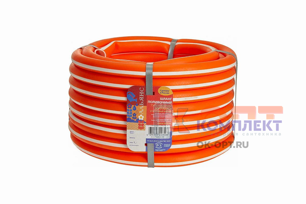 Шланг полив ТЭП с покрытием Soft-touc 3/4" (18-20мм) армированный, оранжевый (бухта 20м)