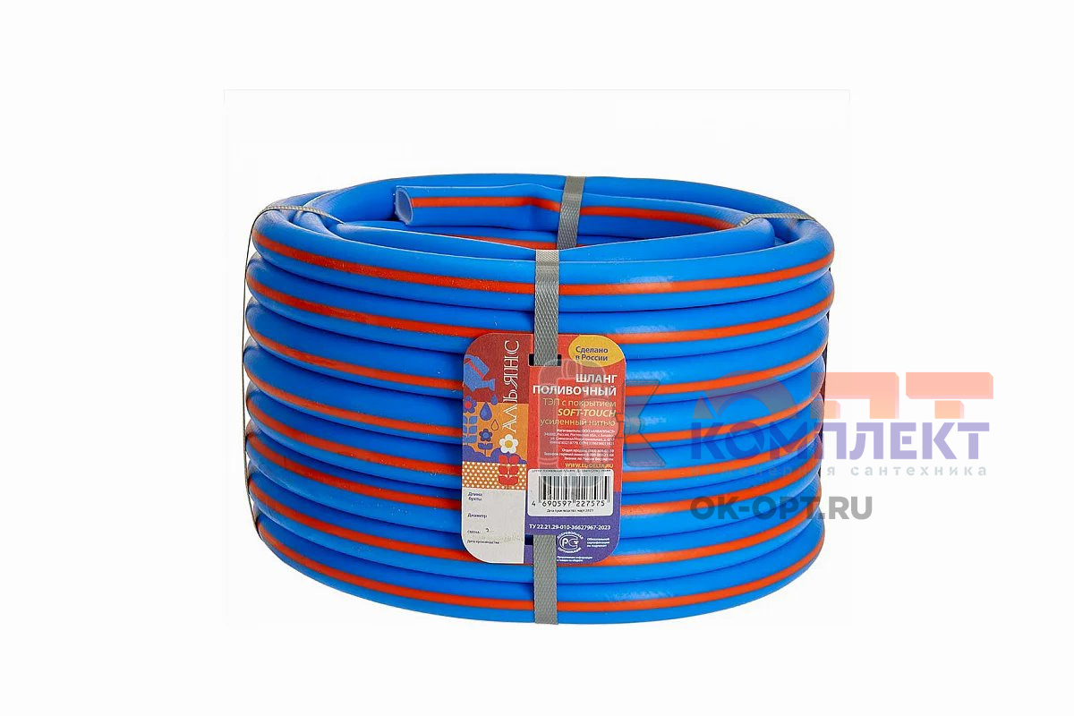 Шланг полив ТЭП с покрытием Soft-touc 3/4" (18-20мм) армированный, синий (бухта 20м)