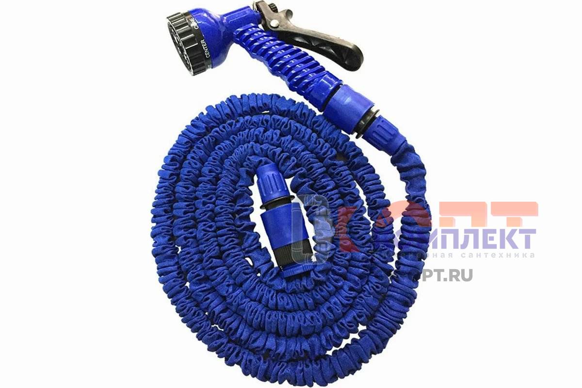 Шланг саморастягивающийся 5-15м в комплекте с коннекторами и пистолетом, синий