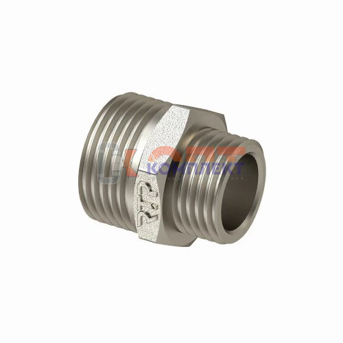 Ниппель переходной, латунь, нар резьба 1_1/4"х1", еврослот, никель, RTP (80/1шт)