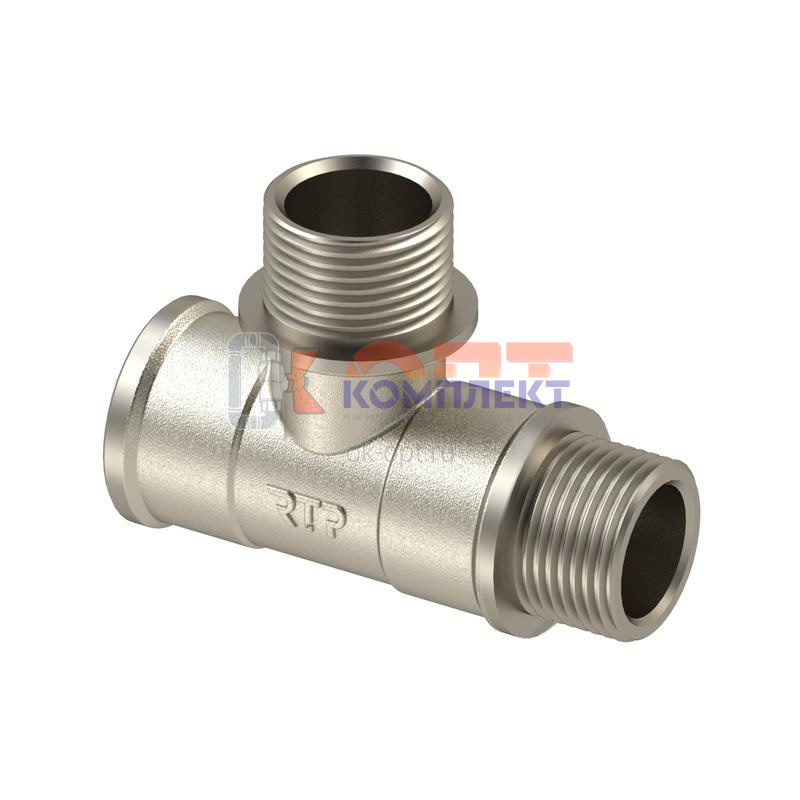 Тройник, латунь, нар/нар/нар резьба 1/2", еврослот, никель, RTP (80/1шт)