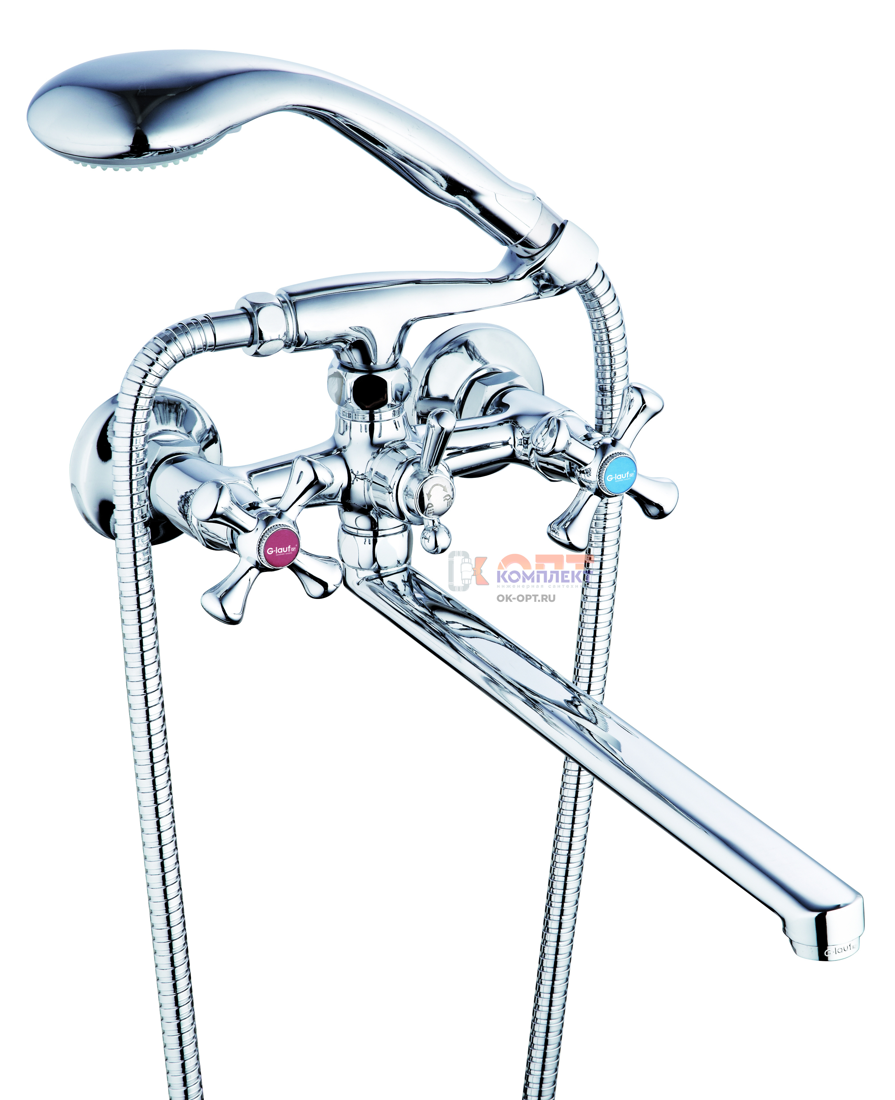 смеситель G.Lauf для ванны с круглым пов. изливом, резиновая (3/8)), штоковое переключение JML7-A605