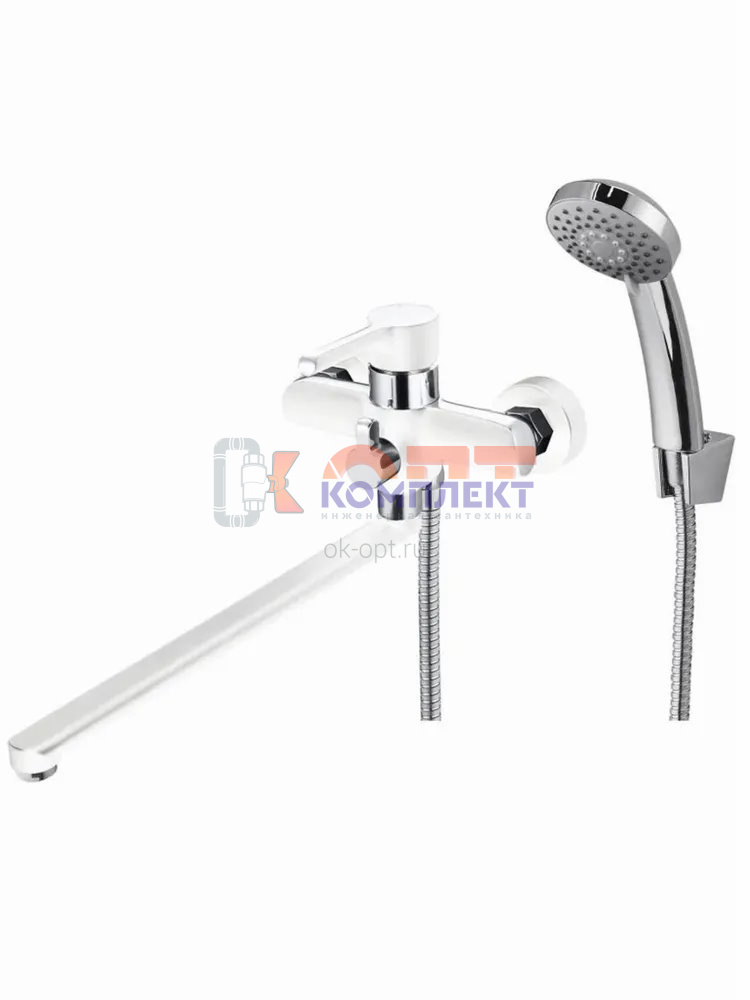 Смеситель ABS пластик для ванны длинный излив, картридж ø35, БЕЛЫЙ мат (1/24шт)